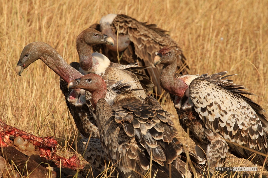 Wenn es um Elefanten und Löwen geht, ist Hilfe schnell in Sicht, aber für die Geier haben die örtlichen Behörden bislang kein offenes Ohr. Anthony Ole Tira, Miteigentümer des Matira Bush Camp, steht an einem Flussübergang des Mara Rivers und zeigt auf eine Fläche bedeckt von Aas. Eine Woche zuvor überquerten 900.000 Gnus den Fluss, wobei Tausende der Tiere zu Tode getrampelt wurden. Das ist normal. Die verwesenden Überreste der toten Tiere, eine Woche darauf, sind es aber nicht. „Vor zehn Jahren wären die Kadaver inzwischen von den Geiern beseitigt worden“, erzählt Antony. „Es gibt viele Orte entlang des Mara River, die nicht mehr so sauber sind, wie sie einmal waren – weil es einfach nicht mehr genug Geier gibt.“ Ein Dorfältester Maasai berichtet, dass die Regierung vor zwei Jahrzehnten Gift gegen die Ausbreitung wilder Hunde einsetzte. In den darauf folgenden Jahren beobachteten die Einheimischen das erste Mal den Rückgang der Geierpopulation. „Jetzt sind wir besorgt, dass sie nicht wieder kommen“, sagt er. Wenn die Geier weiter sterben, wird aus der Idylle „Maasai Mara“ eine stinkenden Grube, ergänzt Antony Tira.